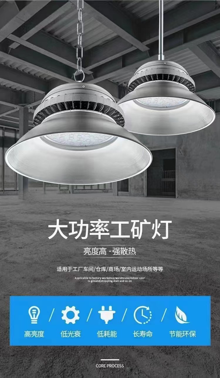 工礦燈,又稱(chēng)高天棚燈,是一種高能效的室內(nèi) LED 燈具,可以廣泛應(yīng)用在工業(yè)廠房、生產(chǎn)車(chē)間、商超、體育娛樂(lè)場(chǎng)所以及倉(cāng)庫(kù)等。按照明功能可分為一般照明燈和局部照明燈兩種。為了滿足不同生產(chǎn)作業(yè)的視覺(jué)需要和燈具安裝條件的需要,工礦燈的反射器應(yīng)能產(chǎn)生各種寬窄程度的光分布。表面涂漆、涂釉使之呈現(xiàn)白色,和用鋁、玻璃鏡、棱鏡玻璃等材料制成的反射器,都可以得到寬的光分布,適合于大面積、工作面垂直或接近垂直的工作場(chǎng)所。對(duì)于高大廠房和有高大機(jī)床的需要單獨(dú)照明的場(chǎng)所,可采用棱鏡玻璃、鏡面玻璃和拋光鋁等控光性能強(qiáng)的材料制成的反射器,得到窄光束分布。